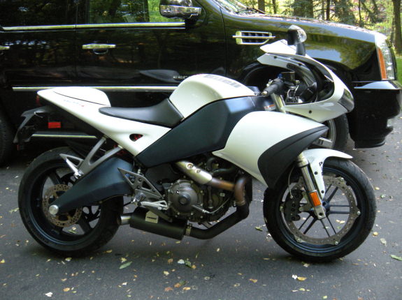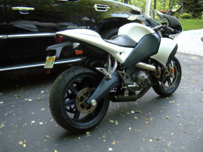 OK, the Buell engineers did a pretty good job of creating an exhaust system that fit the Rotax 1125 and met all of the EPA requirements. The problem we found with it was that it was restrictive, heavy, quiet, blew the exhaust right onto the rear wheel and brake, and wasn't prettiest girl on the block either. In the true Smokey Yanuck tradition we decided to bend the rules a bit and create our own design. The result is the all new Drummer 1125 SS for all Rotax powered Buells.