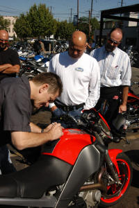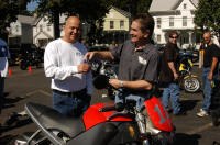 Steve - The engineer gets the keys to his new bike from the man himself.